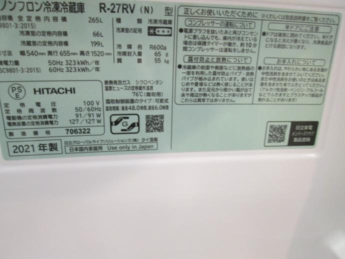 メールでのお問い合わせ【広島市内限定販売】日立|HITACHI 冷蔵庫 R-27RV-N <R-27RV-N >